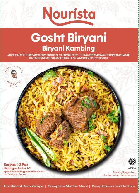 Mughlai style biryani slow-cooked to perfection. It features marinated boneless lamb, saffron-infused basmati rice, and a medley of fine spices.